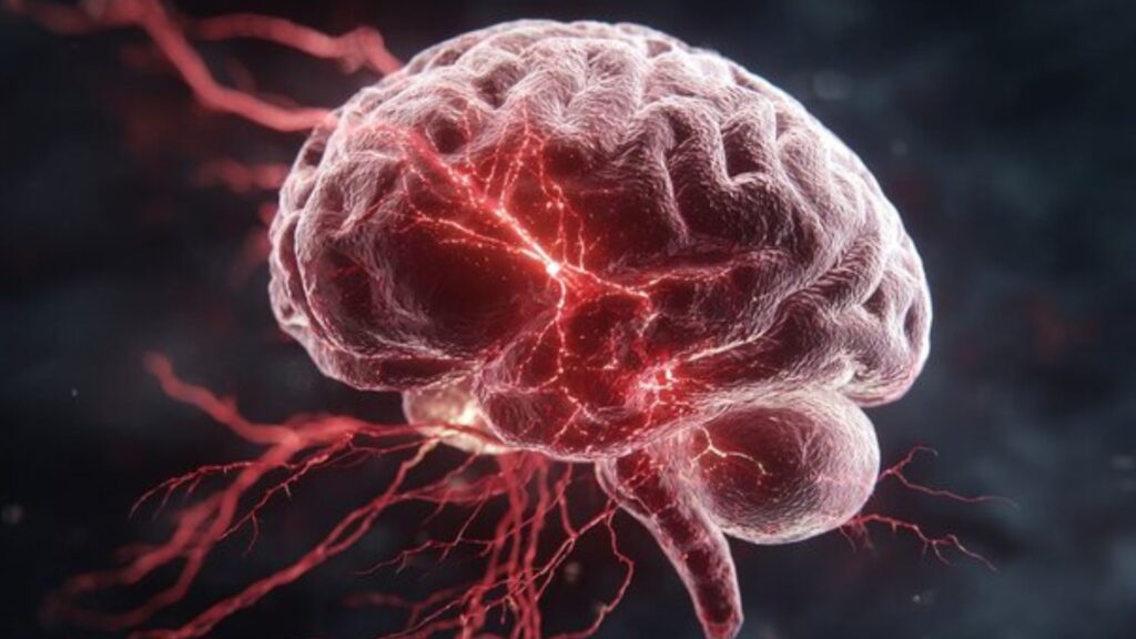 Occurs when a blood vessel in the brain ruptures, causing bleeding and pressure on brain tissue.